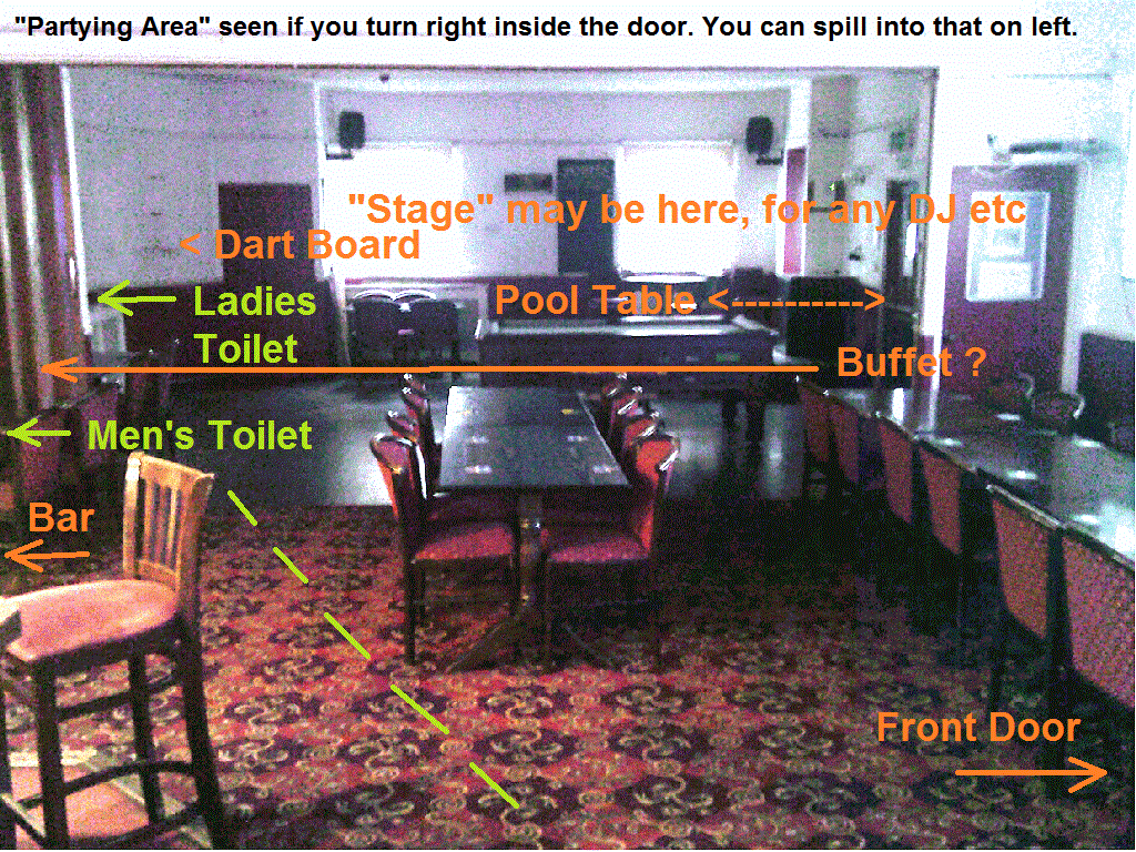 on the right: the "Partying Area" if you turn right coming in. Pool table may be there