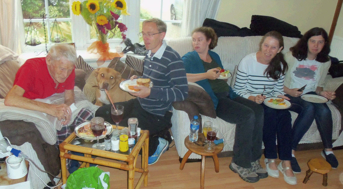 Michael, Becky and Sally - Robin's sister. From 2016 Newsletter : Gary and Saskia seem worried that their dog Prince will steal the cake after the drink ! ( click on pictures to expand )