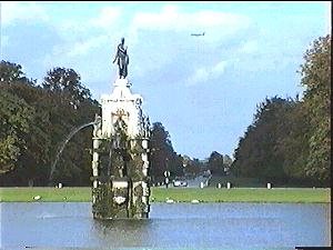 the large circular pond with the "Diana" statue.