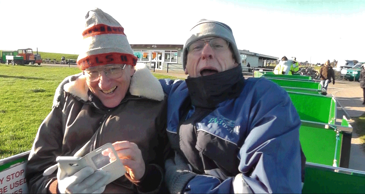 Click on: Dick in his "Birthday Suit" ( Mr Blobby when inflated by helium ), some technical charts, and frames from the video - Robin, June, Peter, and Dick on the train :-)