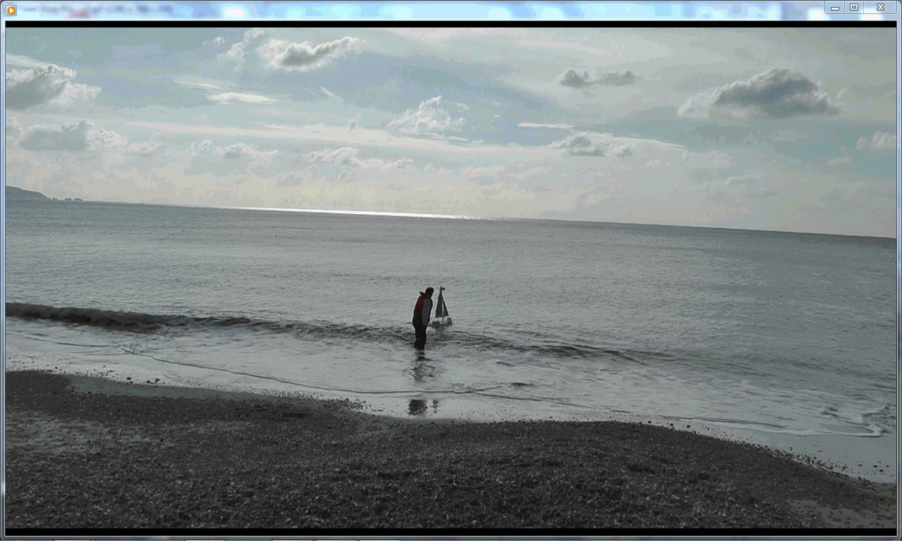 Not long after launch, we had moved back to the car park, on the cliffs, to watch with binoculars and Dick's telescope. Occasionally Robin would snatch some video, through the telepho lens, to include passing boats. When the rain arrived, we enjoyed some warmth and refreshments in The Beachcomber Cafe. The rain did not last long, and we followed Snoopy up the coast, to a car park at Milford on Sea.