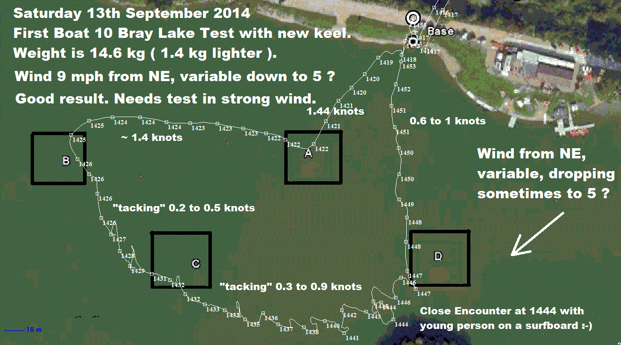 more difficulty at Bray Lake, wading in for launch or recovery, compared with boat 10's old keel of 25cm.