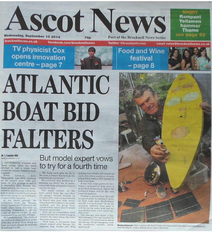 The Blog pages were started after the first 2012 Attempt, where Snoopy's boat was lost. All later attempts were