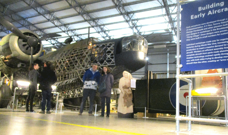 June enjoyed looking around, taking photographs, and Robin chatted to grumpy old guys, some of whom, he'd met before. They chatted about things like the Wellington Bomber, recovered from Loch Ness in 1985. Robin's ex- EASAMS Tornado mates had refurbished things like the radio - it worked when dried out and the battery recharged ! Also, some things still on the secret list, like the clockwork bomb release timer. Don't worry Dave (ex-Engineer) and Oscar (ex-RAF), I'll be careful what I say here ;-)